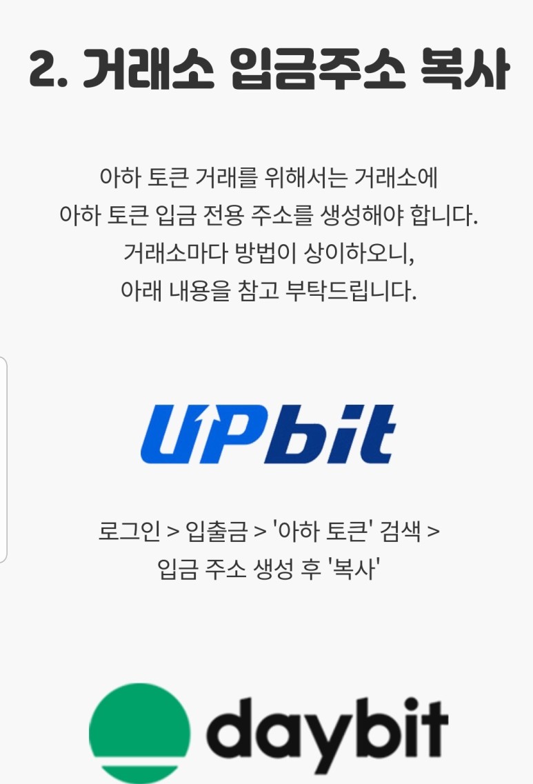 아하토큰 지갑에서 업비트 거래소 옮기고