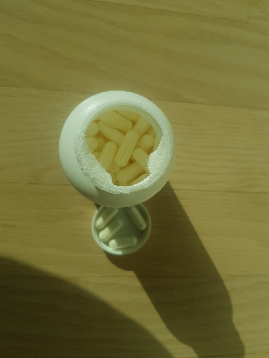 이렇게 하얀색 캡슐형태로 생겼습니다.