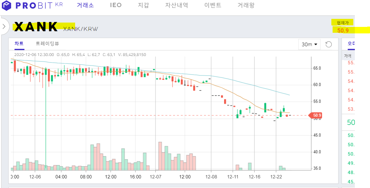 쟁크코인 XANK 가격 = 1토큰당 약 51원