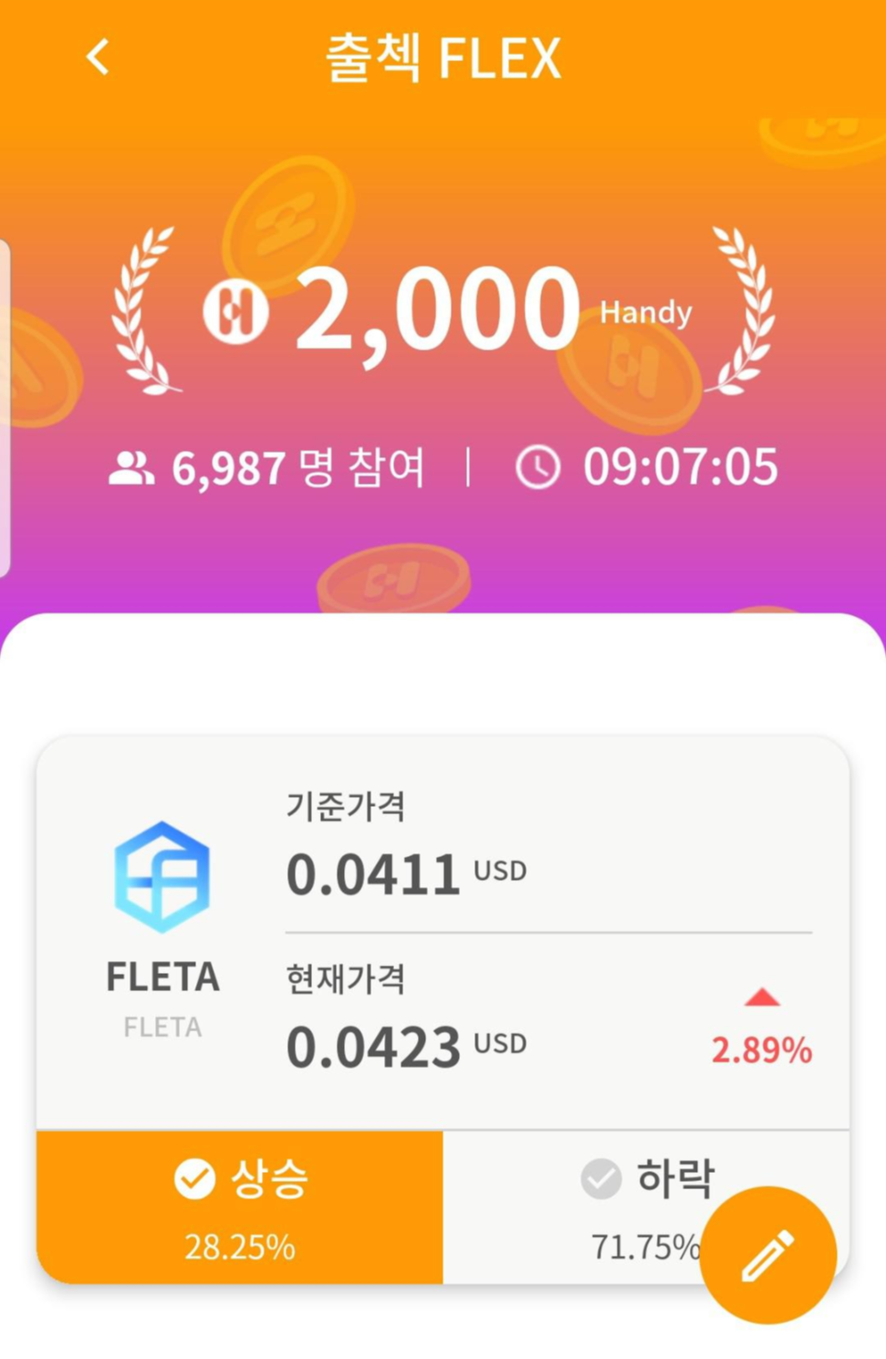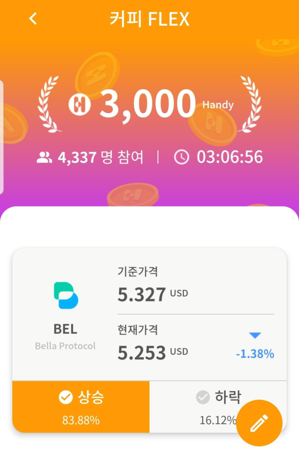 -코인 가격 예측해서 정답 맞추면 보상으로 핸디코인 지급!!!