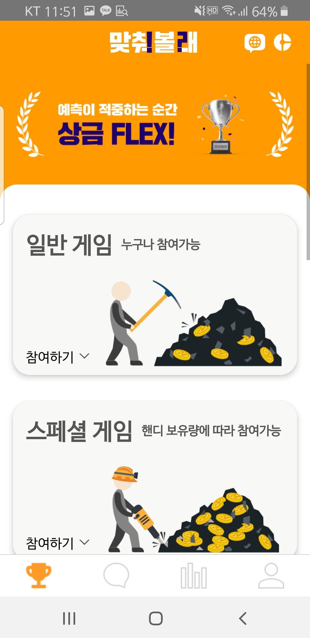 총 3가지 예측 게임이 있습니다 -출첵 플렉스/커피 플렉스 / 월급 플렉스
