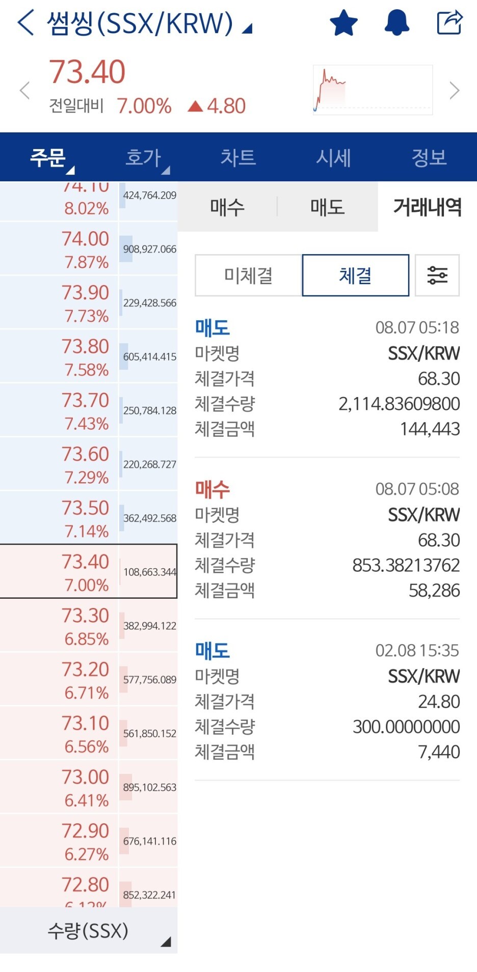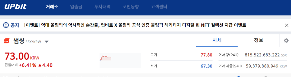 < SSX 코인 시세 -2021년 08월 07일 기준 >