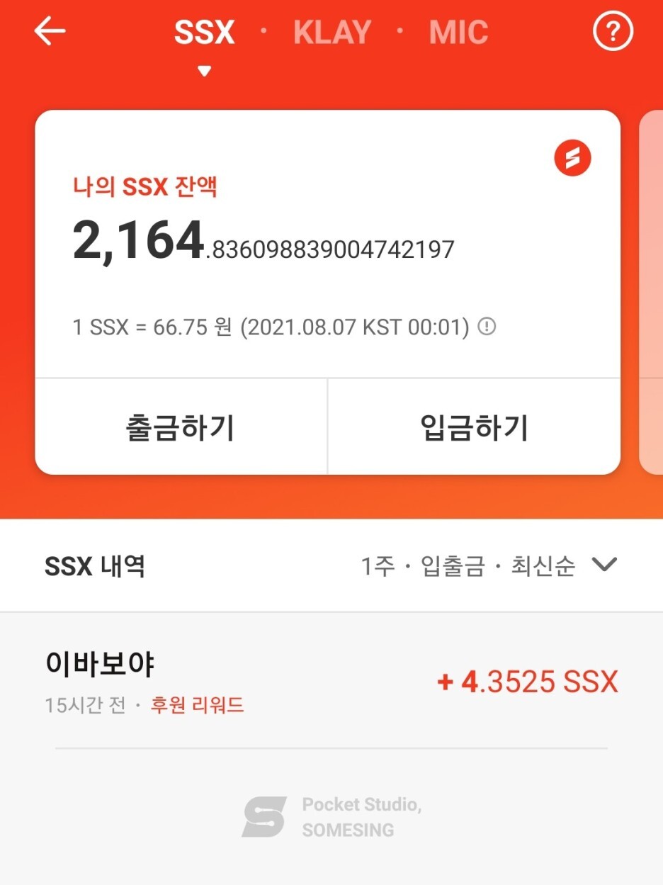 제 귀여운 2114 썸씽코인(SSX) 이 입금되었습니다